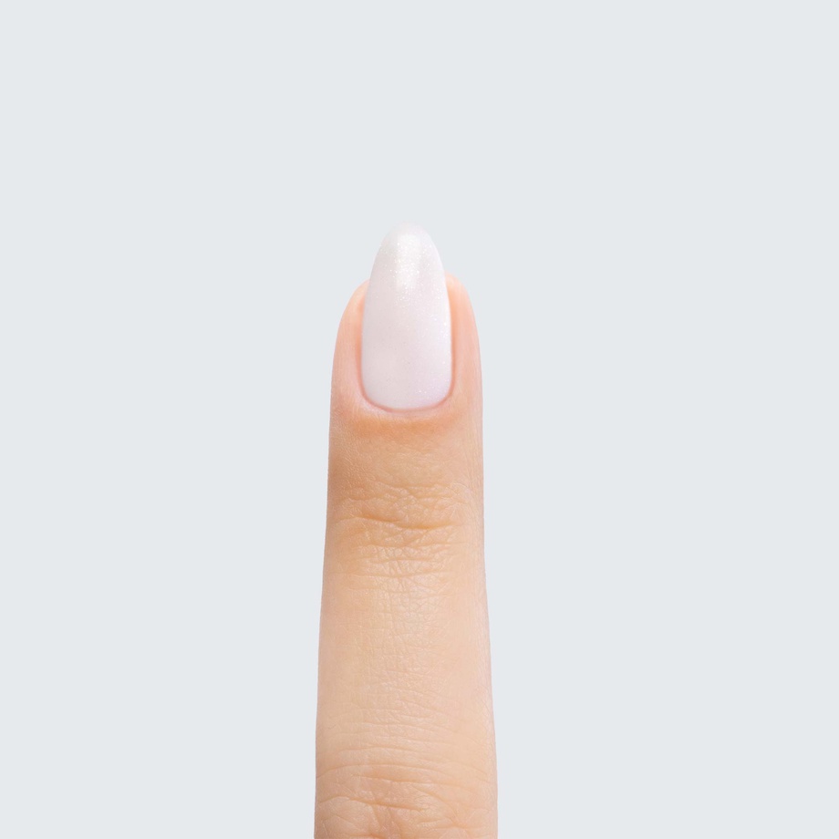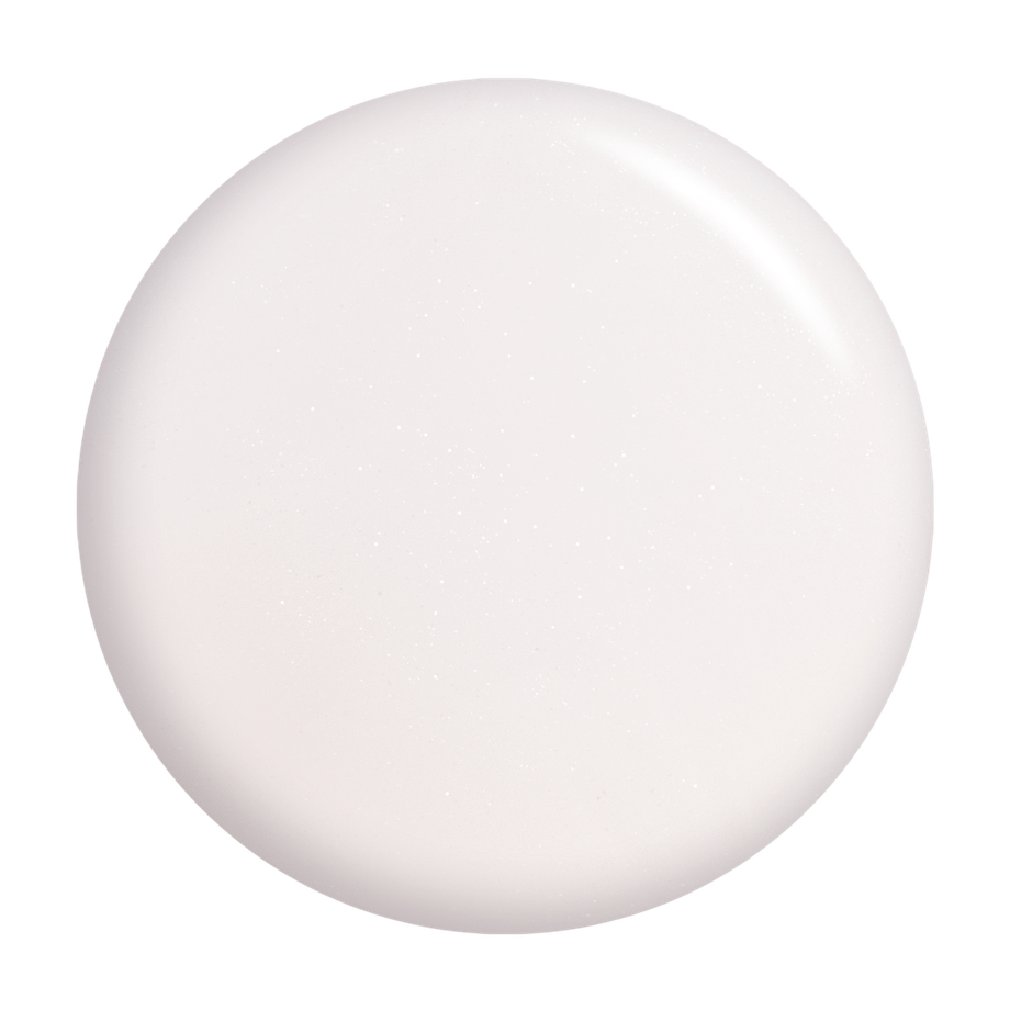 Pearly white with shimmer. Semi-sheer. Semi-matte finish. Neutral undertone.