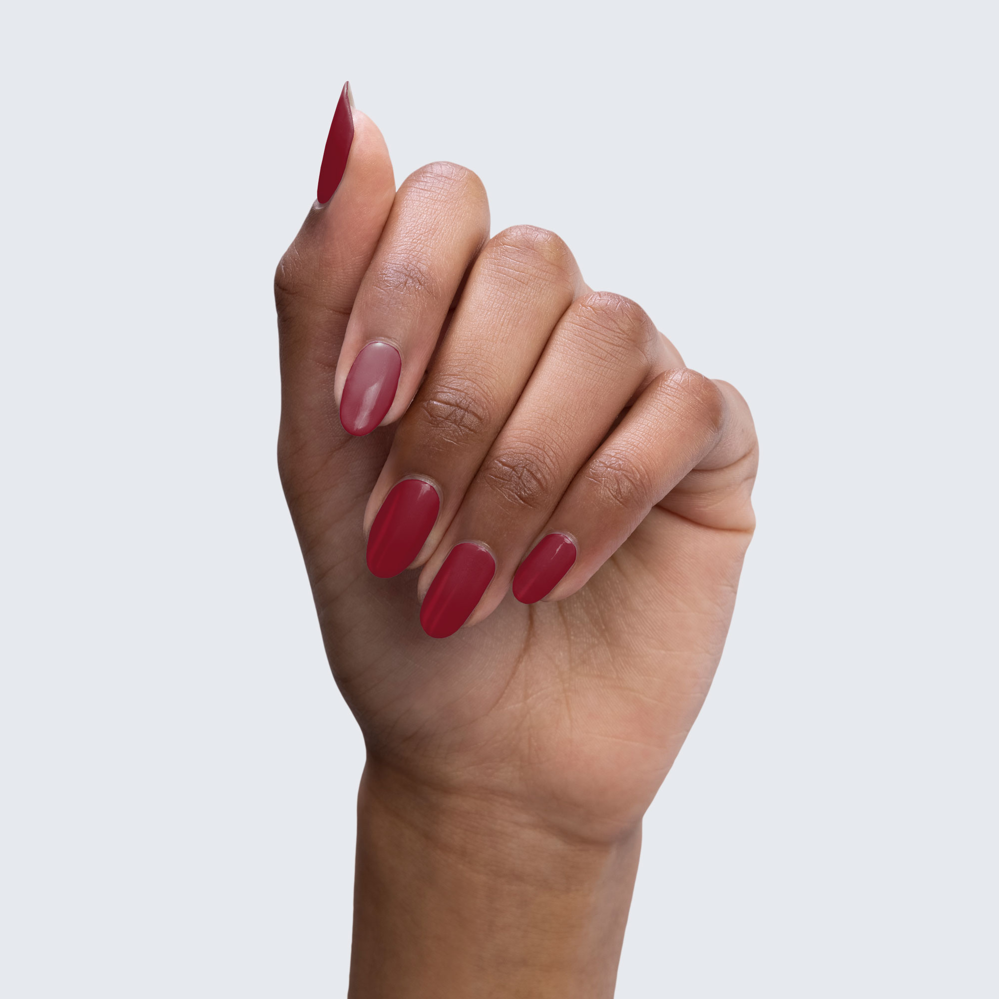 True burgundy. Dark. Opaque. Warm undertone.